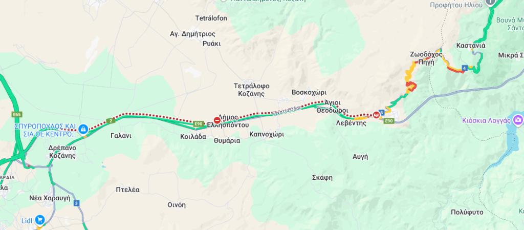 ▪️Τα οχήματα που κινούνται προς Κοζάνη εκτρέπονται μέσω του ανισόπεδου κόμβου Βέροιας.