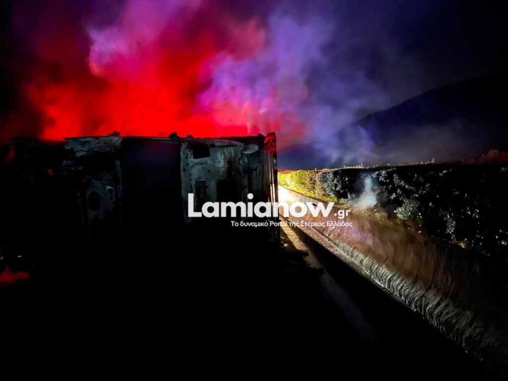 Αθηνών – Λαμίας, στο ρεύμα προς Λαμία, όταν νταλίκα εξετράπη της πορείας της και ανεφλέγη, με τραγική κατάληξη τον θάνατο του 63χρονου οδηγού ο οποίος σύμφωνα με τα πρώτα στοιχεία αρχικά τραυματίστηκε και φέρεται να έχασε την ζωή του από την εκτροπή λίγο μετά, και όχι από τη φωτιά.