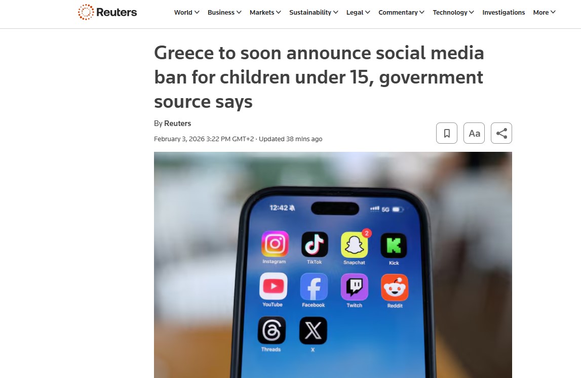 Reuters: Η Ελλάδα «πολύ κοντά» στην απαγόρευση social media για τους κάτω των 15