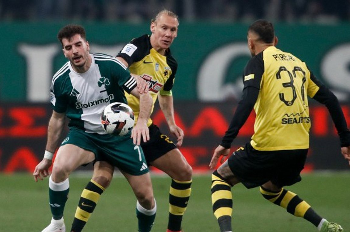 Στο 28’ το σουτ του Μαρσιάλ εκτός περιοχής βρήκε σε ετοιμότητα το Ντραγκόφσκι που μπλόκαρε σταθερά. Μετά το ημίωρο ο Παναθηναϊκός άρχισε να βγάζει μεγαλύτερη ενέργεια στο γήπεδο κι έφτασε στο γκολ. Στο 36’ από πάσα του Πελίστρι, ο Γιόνσον έκανε λάθος γύρισμα, με τον Ουρουγουανό να κυνηγάει την μπάλα, να προλαβαίνει την έξοδο του Στρακόσια και να ανατρέπεται απ’ τον γκολκίπερ της ΑΕΚ. Ο Νορβηγός ρέφερι έδειξε πέναλτι, το οποίο επιβεβαίωσε κι ο συμπατριώτης του στο VAR, Τομ Χάγκεν με τον Ιωαννίδη να αναλαμβάνει την εκτέλεση και να ευστοχεί κάνοντας το 1-0, παρά την πολύ καλή εκτίναξη του Στρακόσια.