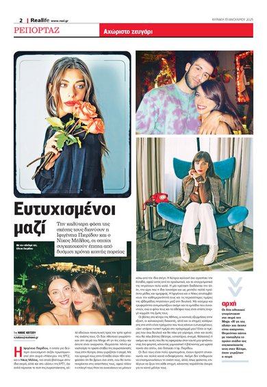 Η Ιφιγένεια Πιερίδου, η οποία για δεύτερη συνεχόμενη σεζόν πρωταγωνιστεί στη σειρά «Ηλέκτρα» της ΕΡΤ2, και ο Νίκος Μέλλος, τον οποίο βλέπουμε στην ίδια σειρά, αλλά και στο «Δίχτυ» της ΕΡΤ1, όχι απλά πέρασαν το τεστ της συγκατοίκησης, αλλά οδεύουν πανευτυχείς προς τον τρίτο χρόνο της σχέσης τους. Οι δύο ηθοποιοί γνωρίστηκαν στη σειρά του Μega «Η γη της ελιάς» και έκτοτε είναι αχώριστοι. Θυμούνται πάντα με νοσταλγία το πρώτο στάδιο της συγκατοίκησής τους στην Κύπρο, όπου γυριζόταν η σειρά. Με τον ερχομό τους στην Ελλάδα είχαν ήδη αποφασίσει ότι θα βρουν ένα σπίτι, που θα ανταποκρίνεται στις απαιτήσεις τους, αφού πλέον η επιλογή τους ήταν να συνεχίσουν να μένουν κάτω από την ίδια στέγη.