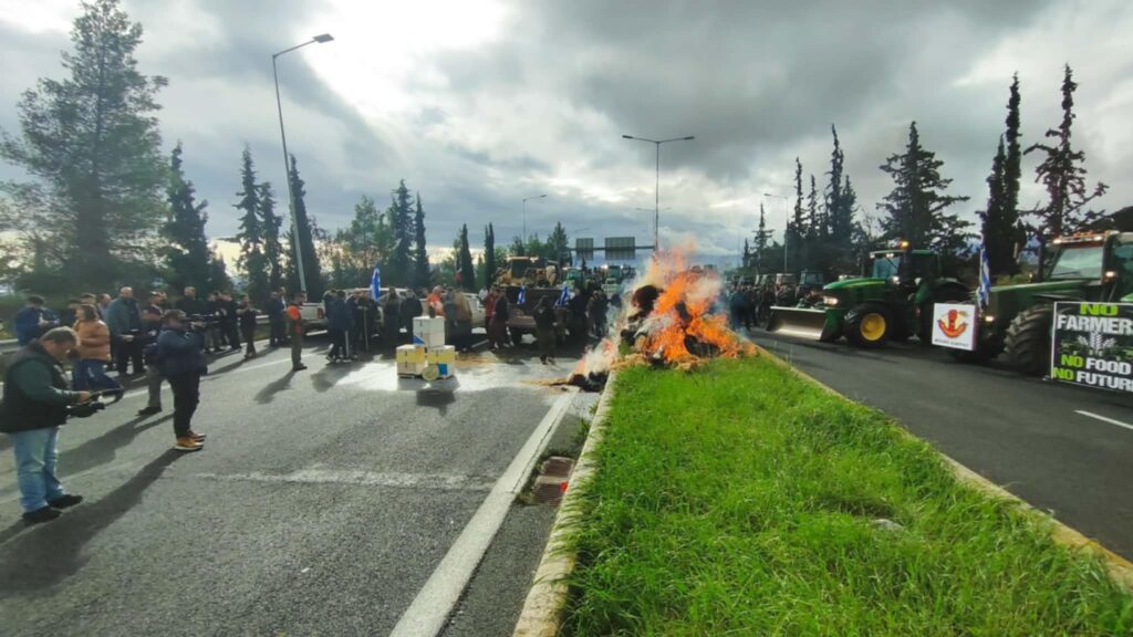 Σε αποκλεισμό της Εθνικής Οδού στο ύψος του κόμβου των Μικροθηβών προχώρησαν αγρότες, μελισσοκόμοι και κτηνοτρόφοι από τις περιοχές Αλμυρού, Βελεστίνου και Ν. Αγχιάλου. Εχουν κλείσει την εθνική και στα δύο