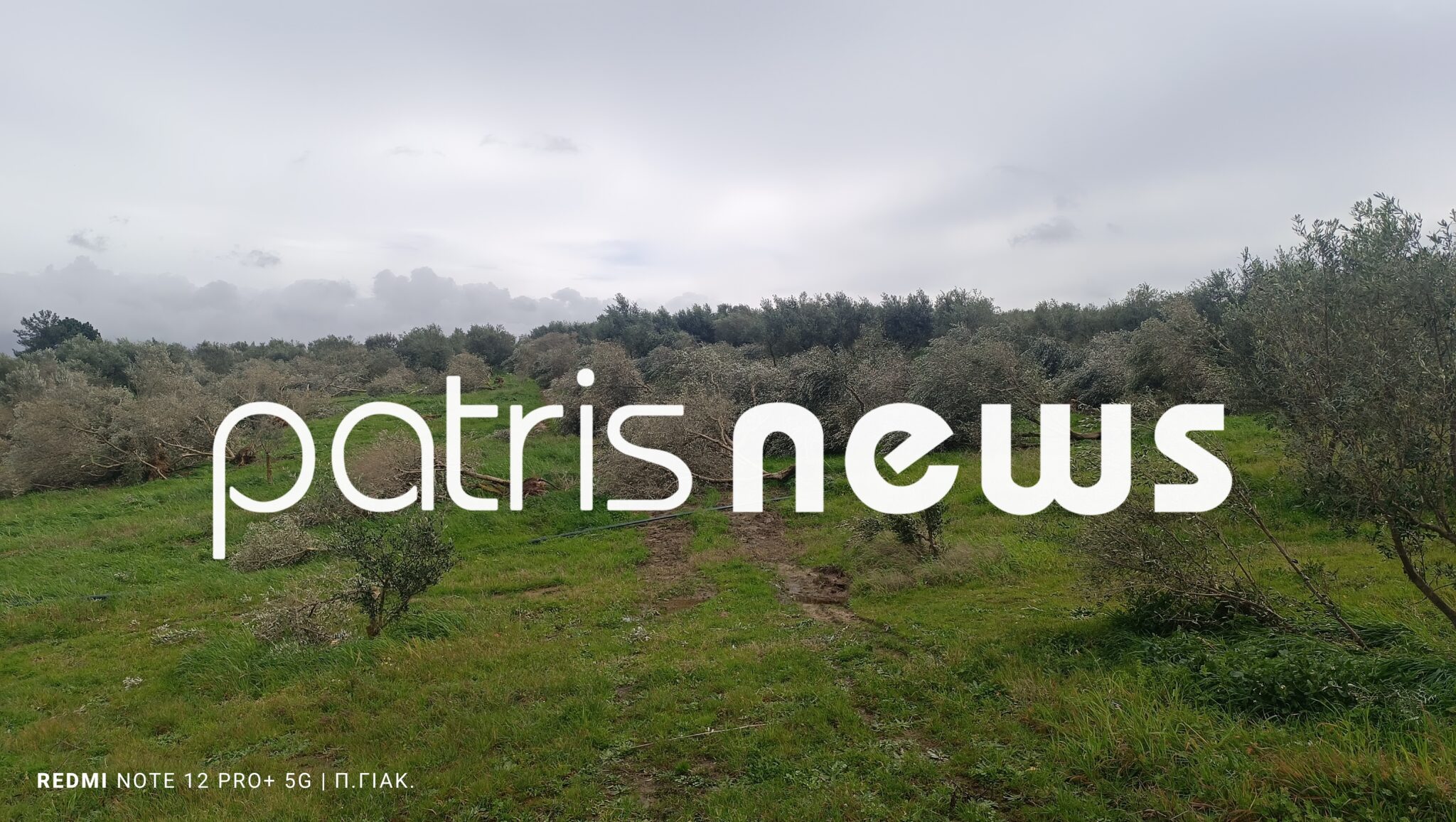 Η ζημιά αφορά περίπου 20 στρέμματα, ενώ το σύνολο της εγκατάστασης φτάνει τα 30. Το φαινόμενο έδρασε τοπικά, σε μια ευθεία γραμμή που, όπως φαίνεται, παρέσυρε δέντρα, καλλιέργειες και τις μεταλλικές κατασκευές των θερμοκηπίων.