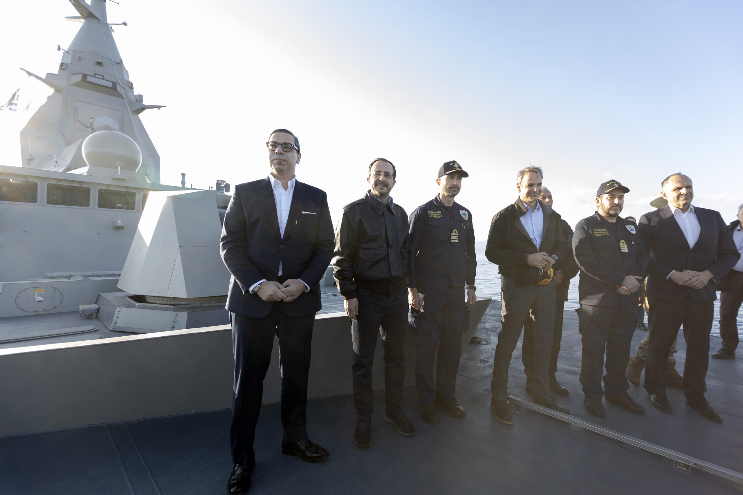 Ο πρωθυπουργός Κυριάκος Μητσοτάκης και ο Πρόεδρος της Κυπριακής Δημοκρατίας Νίκος Χριστοδουλίδης επισκέφτηκαν τη φρεγάτα «Κίμων» του πολεμικού ναυτικού, που μαζί με τη